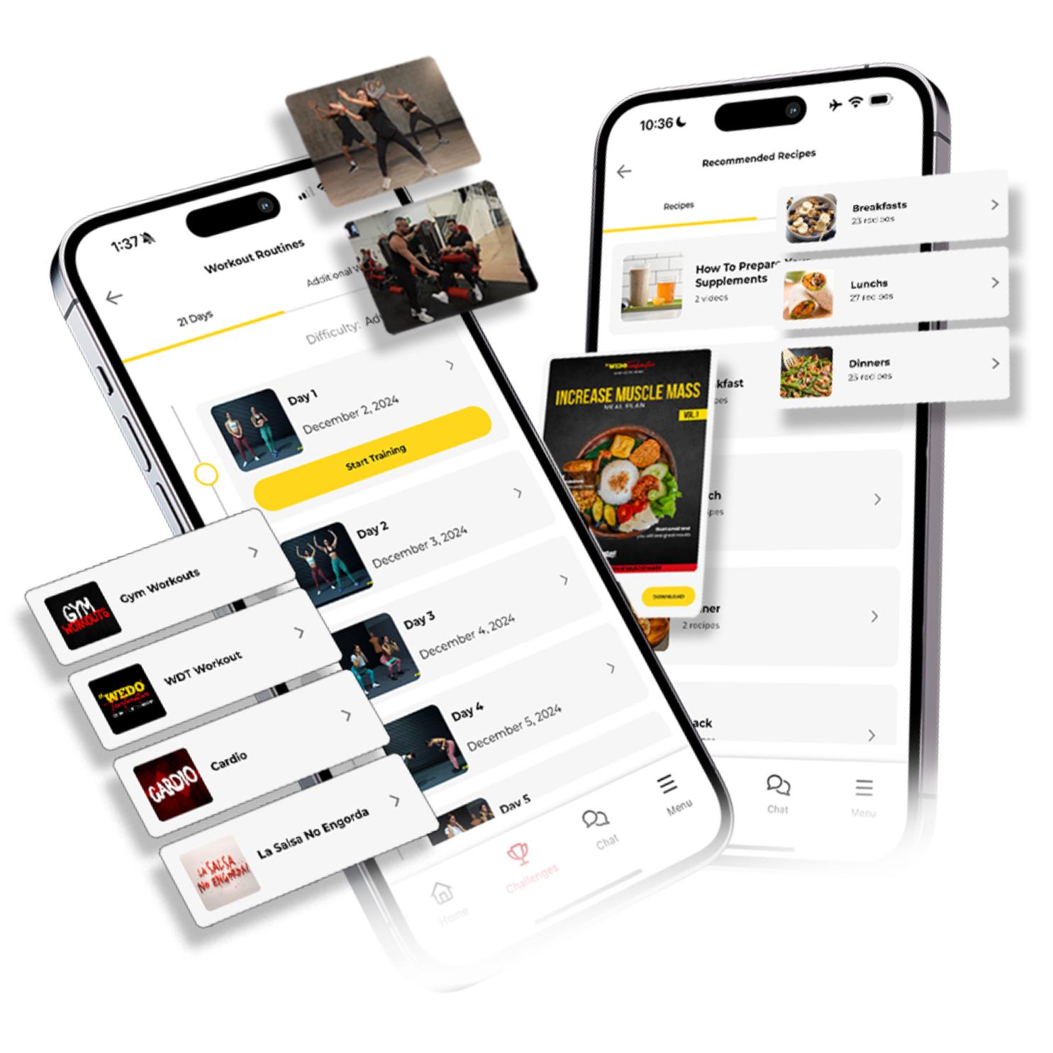 Je krijgt een compleet programma met voedingsbegeleiding, motiverende workouts en concrete mindset-opdrachten. Via onze exclusieve app volg je je vooruitgang en blijf je gemotiveerd door de kracht van een hechte community.
